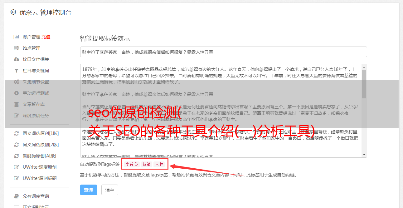 优采云 发布时间: 2022-03-23 17:02seo伪原创检测(