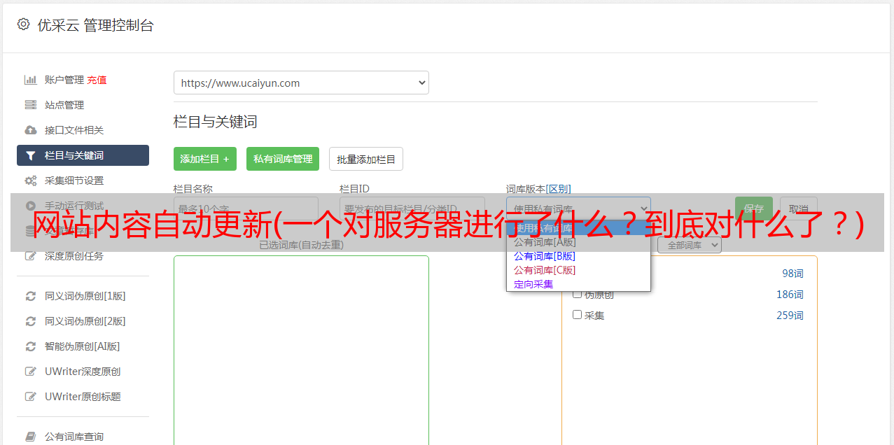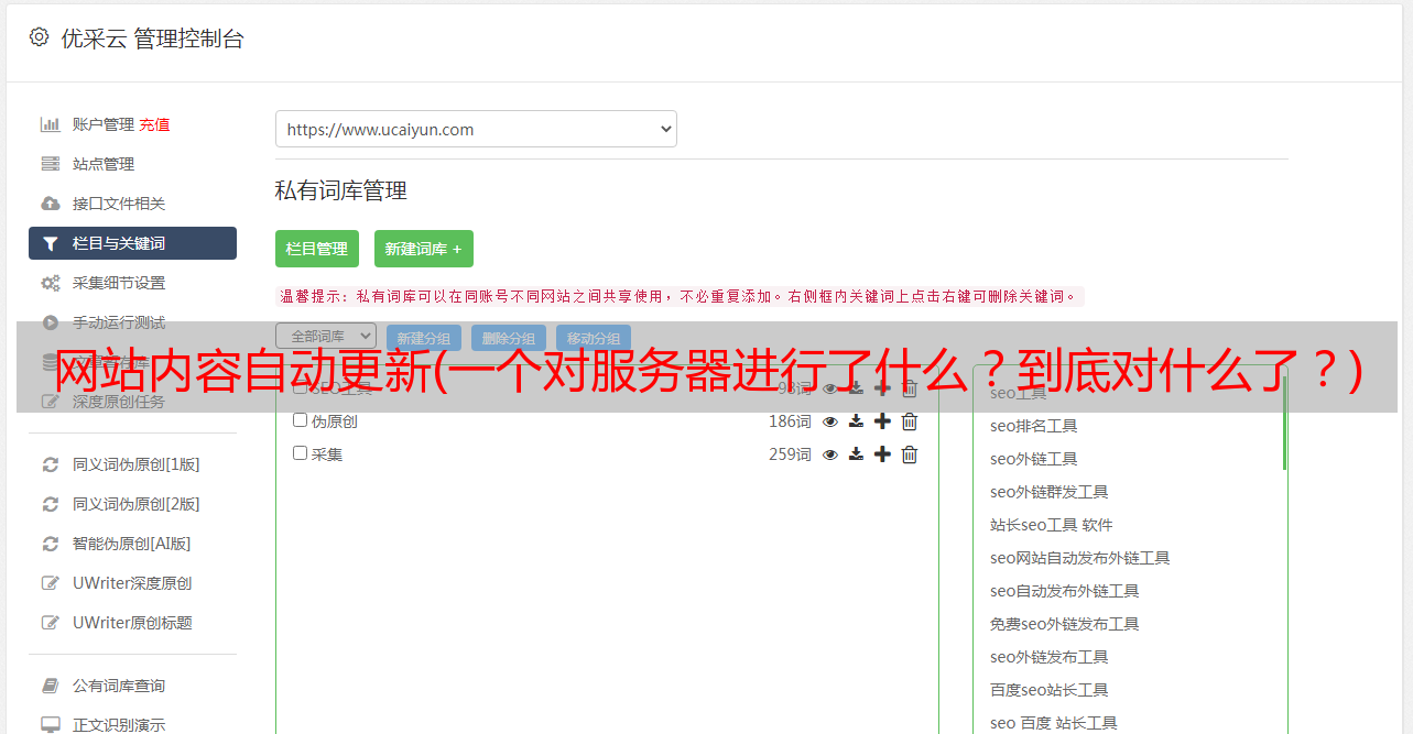 优采云 发布时间: 2022-03-23 18:19网站内容自动更新(一个对服务器进行了什么?到底对什么了?)