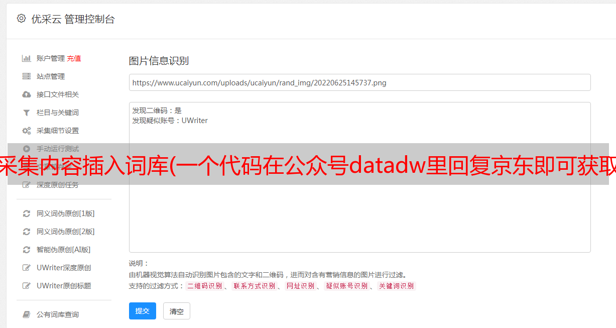 优采云 发布时间: 2022-03-24 00:20采集内容插入词库(一个代码在公众号datadw里回复京东即可获取(组图)