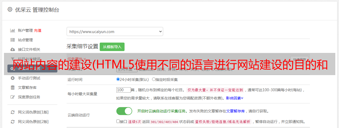 优采云 发布时间: 2022-03-24 05:01网站内容的建设(HTML5使用不同的语言进行网站建设的目的和要求是什么)