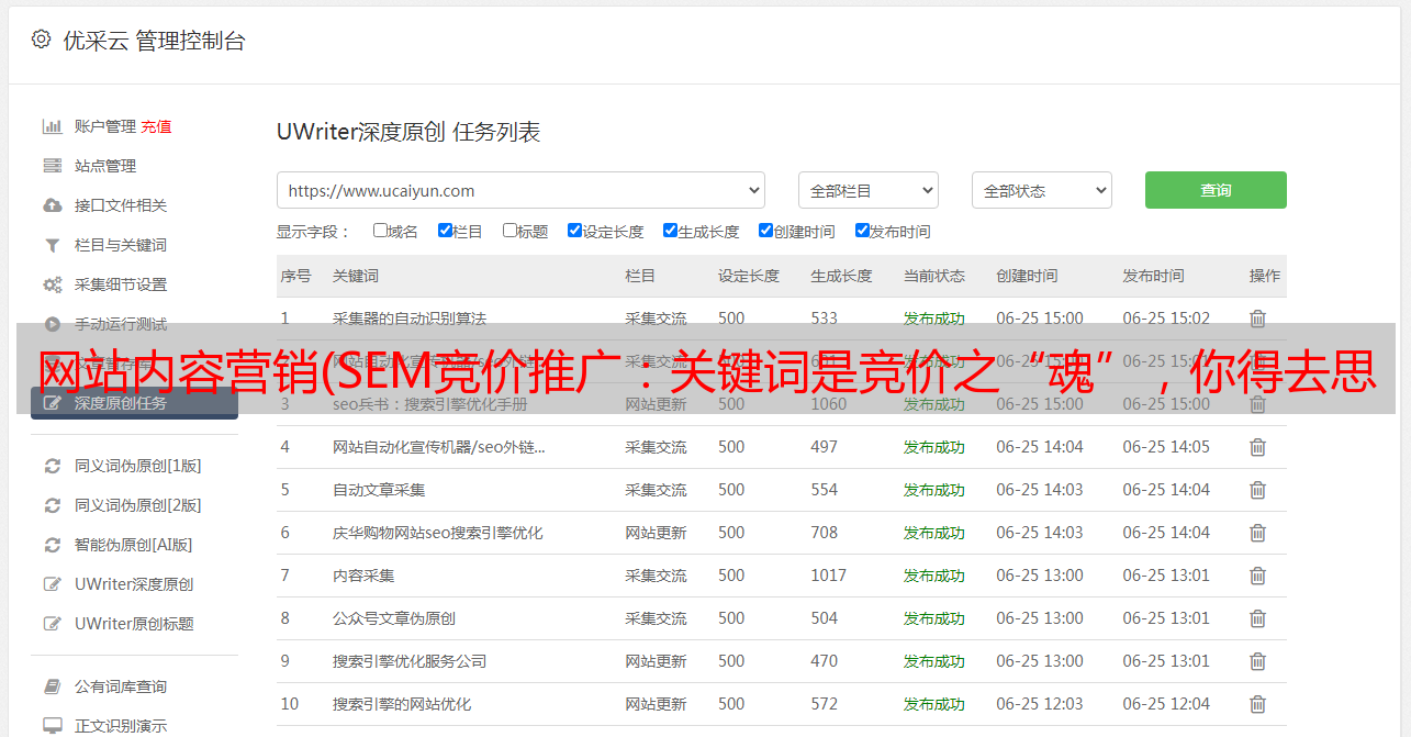 优采云 发布时间: 2022-03-24 06:11网站内容营销(SEM竞价推广:关键词是竞价之“魂”,你得去思考)