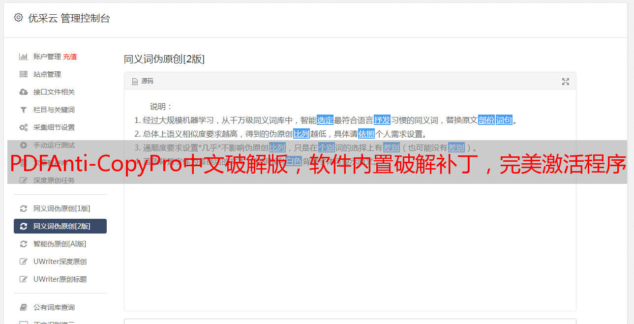 优采云 发布时间: 2021-05-11 21:21PDFAnti-CopyPro中文破解版,软件内置破解补丁,完美激活程序
