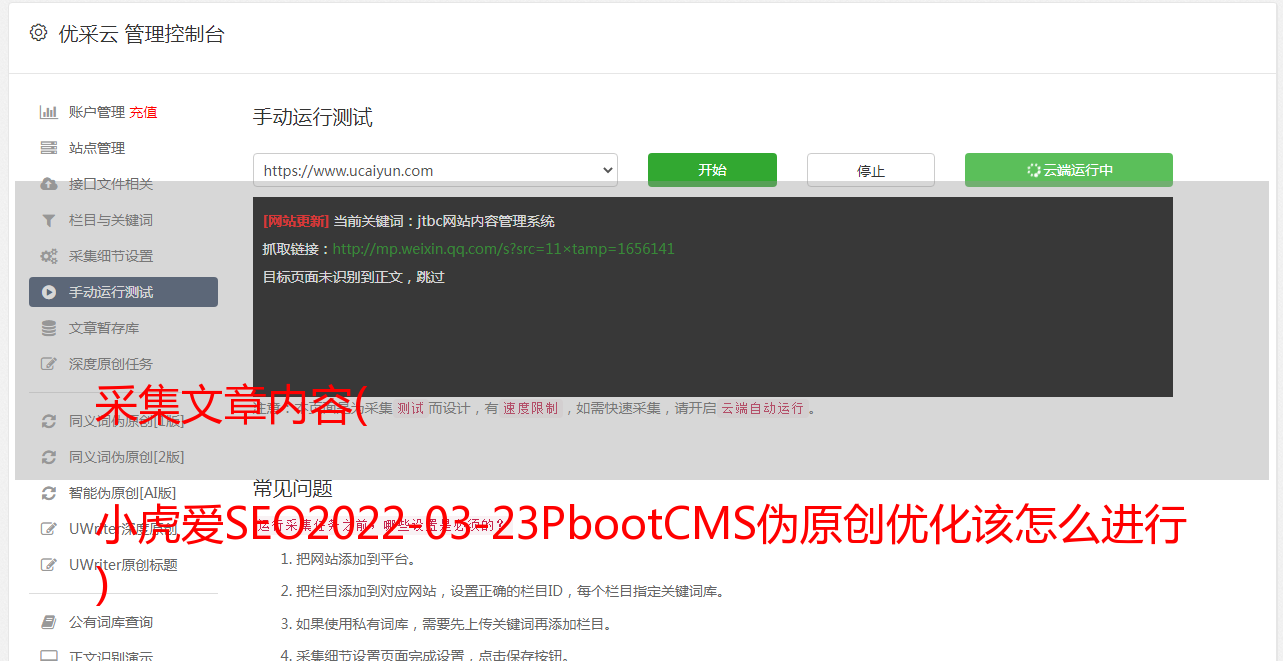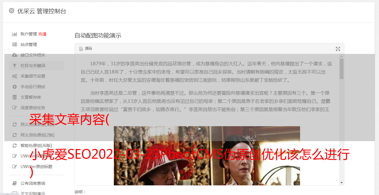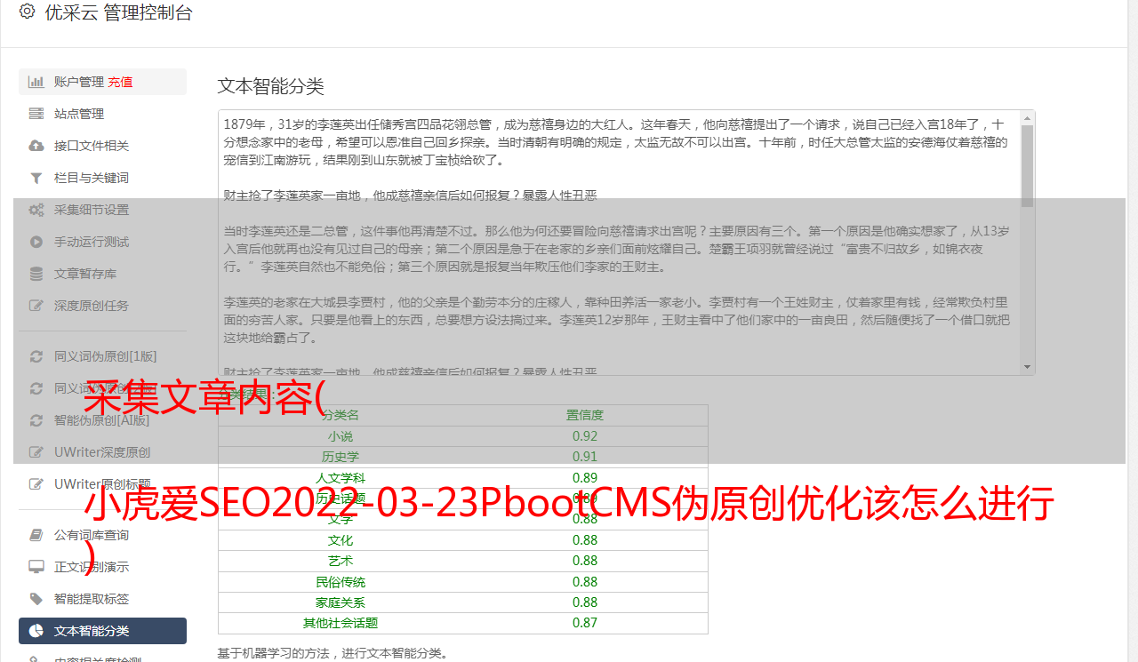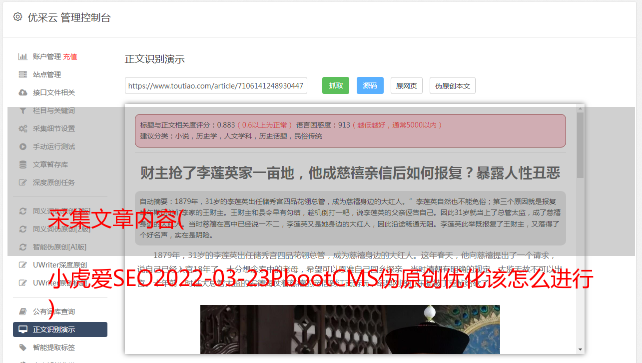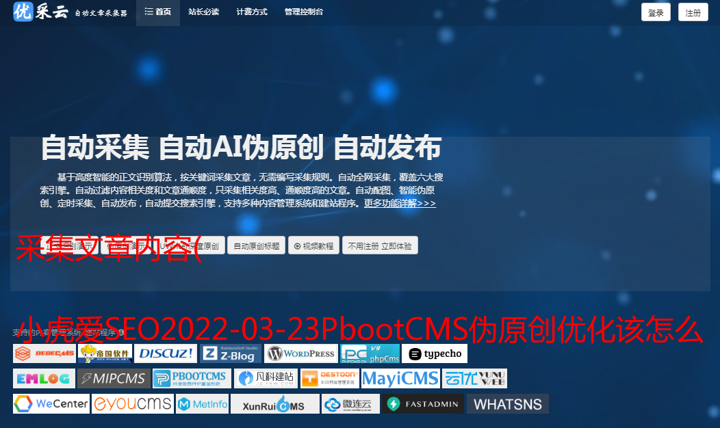 采集文章内容( 小虎爱SEO2022-03-23PbootCMS伪原创优化该怎么进行 )