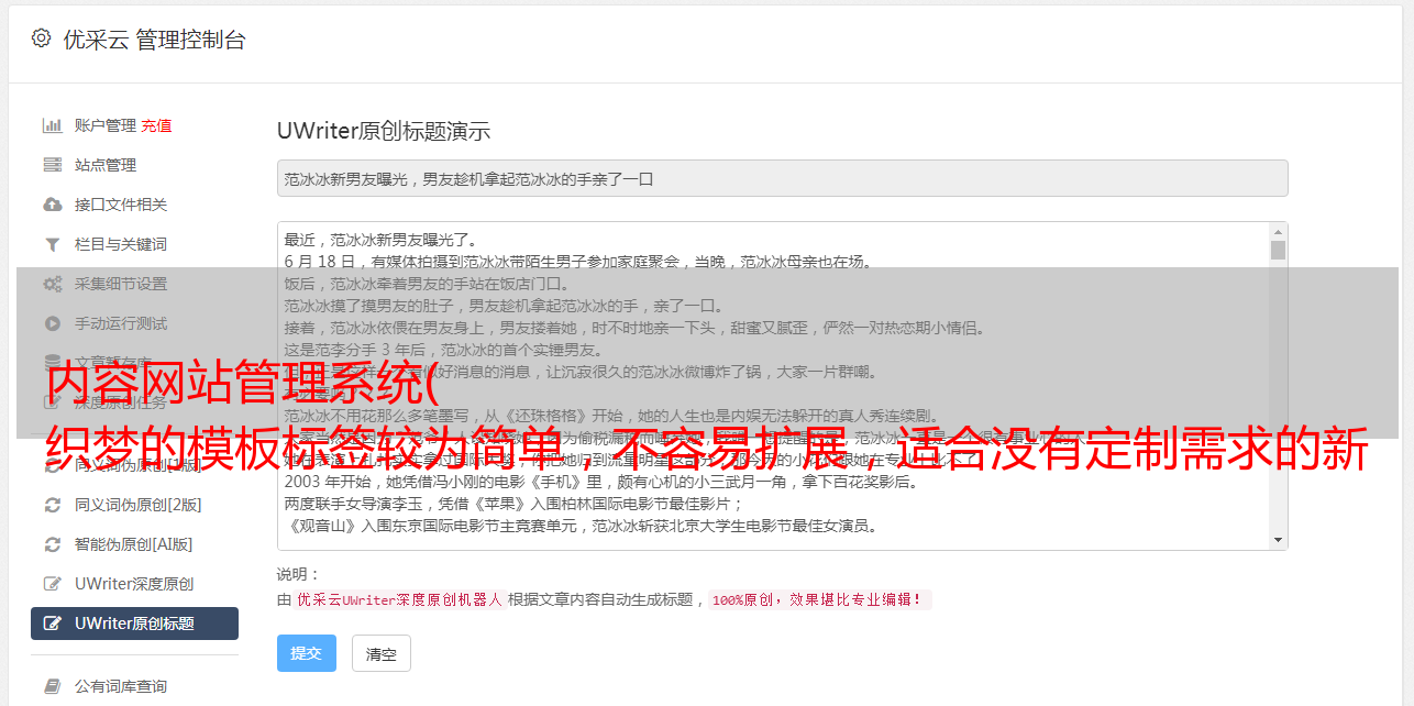 优采云 发布时间: 2022-03-24 14:11内容网站管理系统(