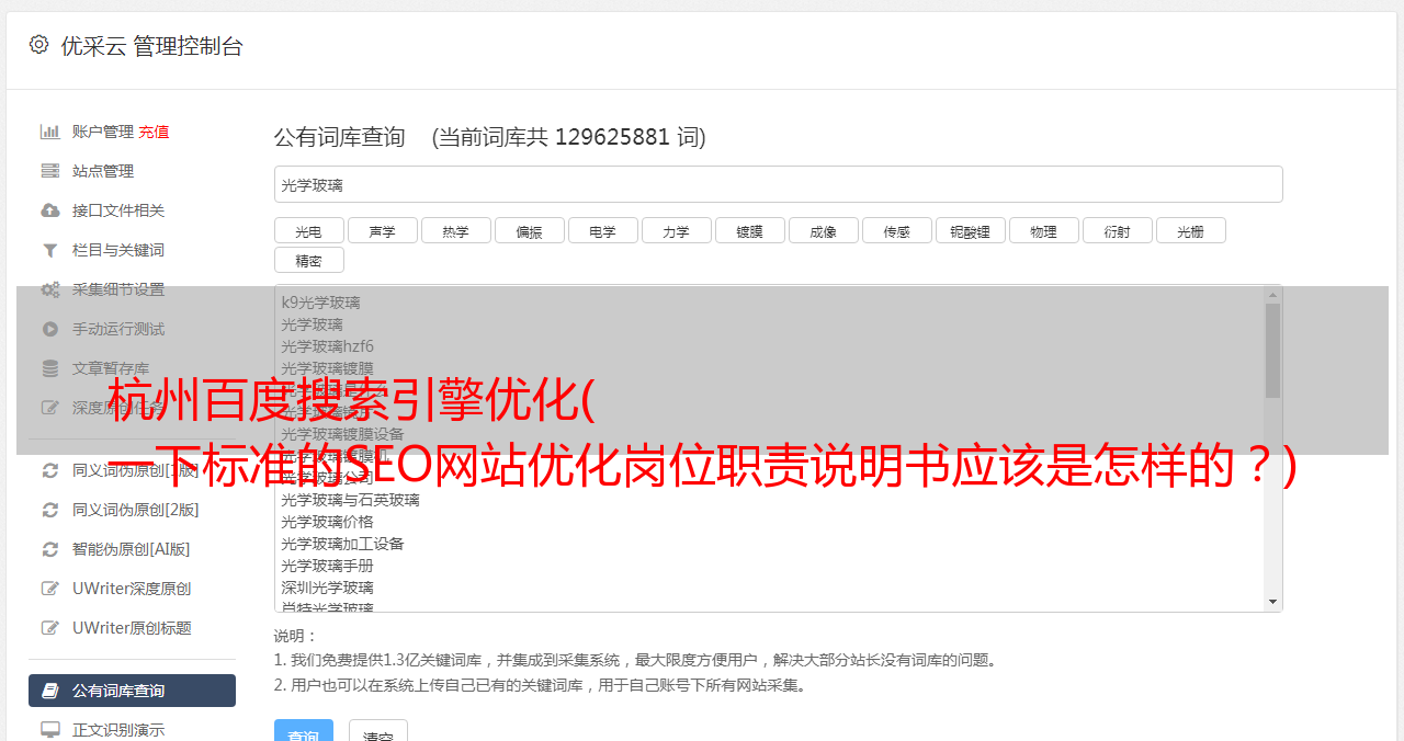 杭州百度搜索引擎优化( 一下标准的SEO网站优化岗位职责说明书应该是怎样的?)