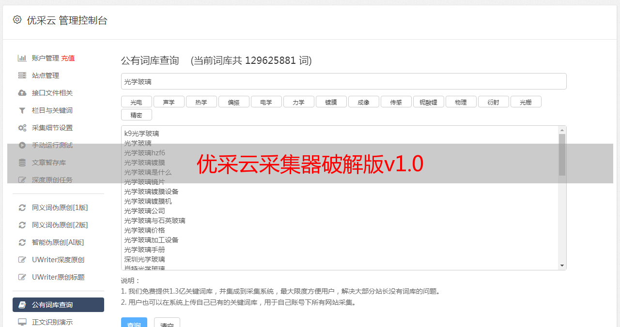 优采云采集器的Dream Weaving版经过精心设计和开发. 它支持30多个主流网站建设计划的采集和发布任务. 它是一个功能强大的网站论坛内容采集工具. 支持采集各种论坛的帖子和回复,以及网站和博客帖子的内容. 通过相关配置,您可以轻松采集80%的网站内容供自己使用. 根据各个网站建设计划之间的差异,优采云采集器分为三类: 论坛采集器,CMS采集器和博客采集器. 它们总共支持近40个主流网站建设程序的数百个版本,用于数据采集和发布任务,并支持本地图片. 它支持网站登录采集,页面捕获,手动登录发布的全面模拟,并且该软件运行快速,安全且稳定!论坛采集器还支持论坛成员的无限注册,自动增加帖子查看者的数量,并自动发布. 优采云采集器易于操作,高效,快速,可以帮助用户增加在线论坛和注册会员的数量,提高论坛的知名度,并促进市场推广. 优采云采集器功能强大,可以帮助用户轻松管理和安排. 操作也很简单. 用户只需要一个键即可使用它. 优采云采集器具有内置的超级SEO伪原创模块,同义词替换,英汉翻译,简体和繁体翻译,使您的采集更加强大!
