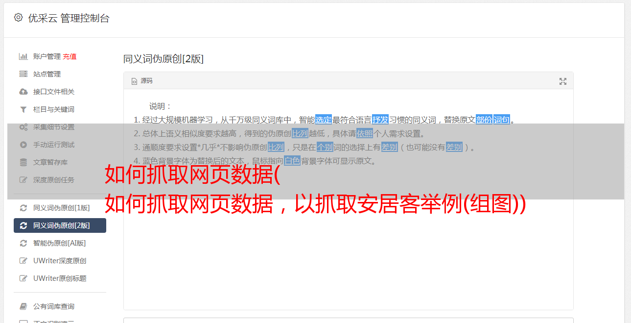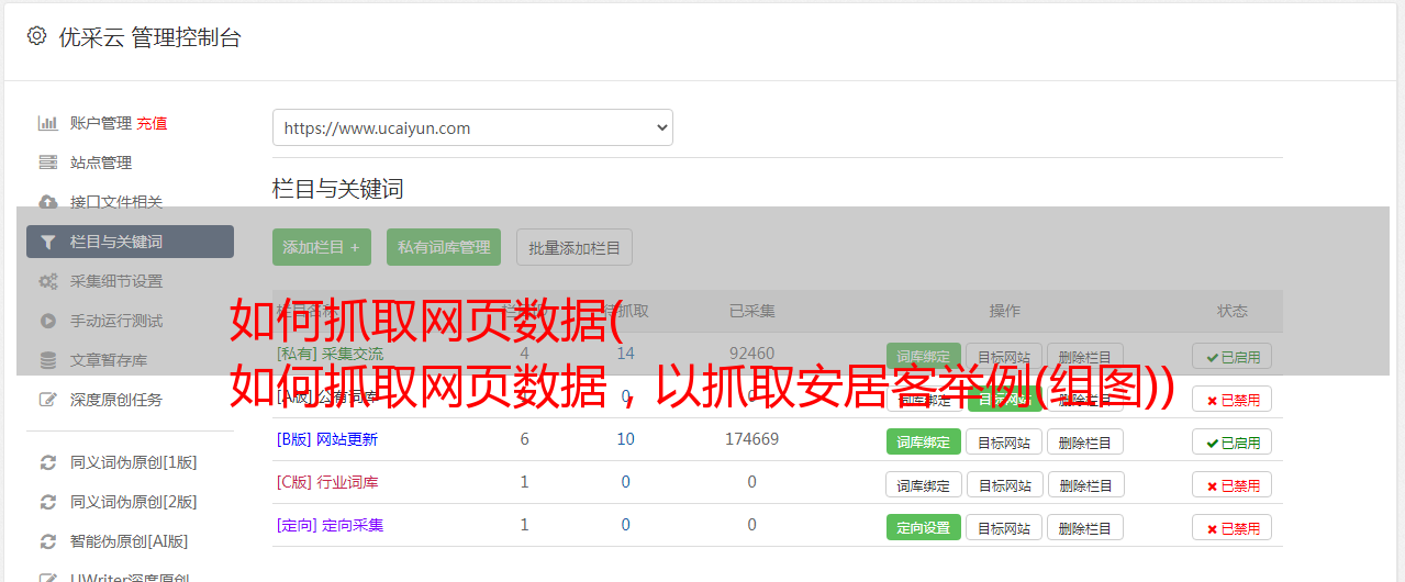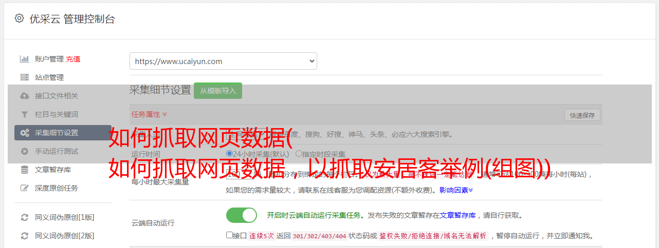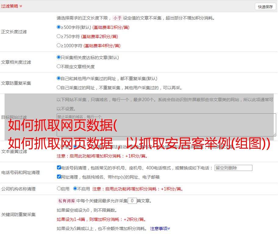 如何抓取网页数据抓取 Anjuke 示例 图1 2)复制你要保存的网址采集到网站的输入框,点击“保存网址”