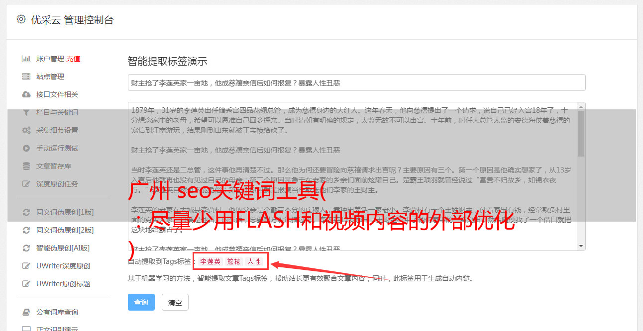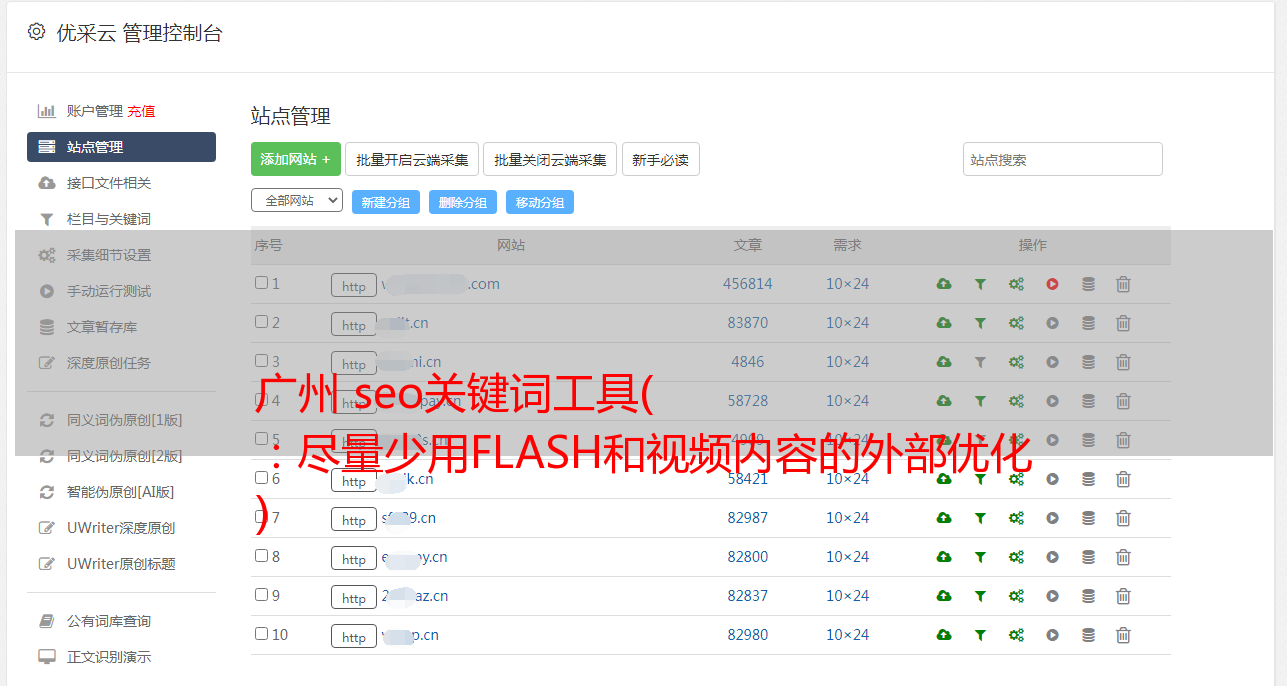 广州 seo关键词工具( :尽量少用FLASH和视频内容的外部优化 )