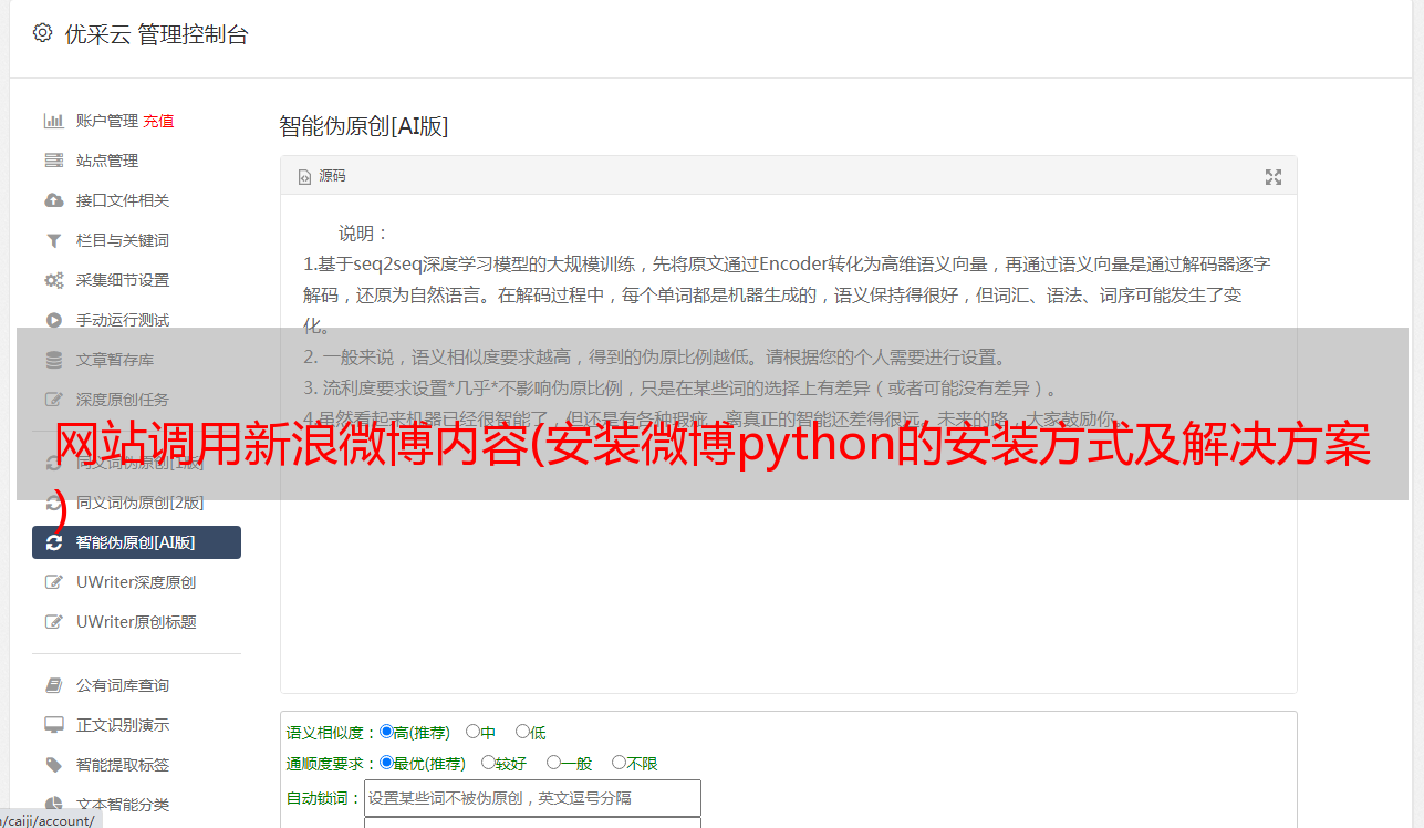 网站调用新浪微博内容(安装微博python的安装方式及解决方案 )
