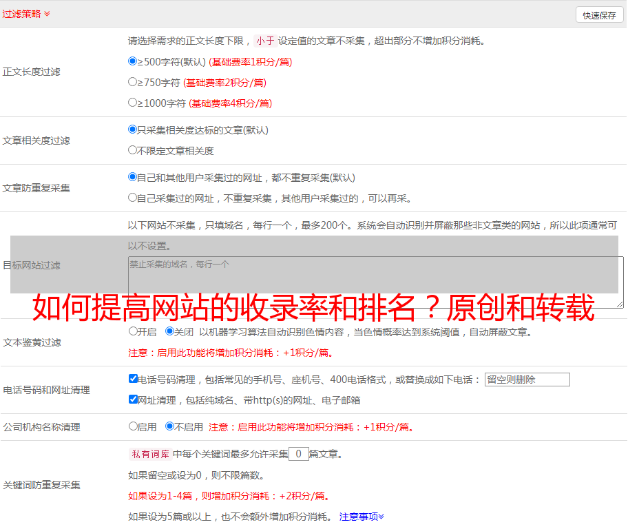 一方面,高质量的内容转发具有快速的采集和排名,这可以帮助网站或平台在短时间内获得更好的流量,但也具有一定的时效性,并且排名具有一定的及时性限制。另一方面,网站运营商和发起人在重印Internet资源时需要控制一定的比例,否则,网站重印的内容越多,原创的内容就越少,这将导致网站成为收录。没有排名尴尬的情况。在网站的运营和推广过程中,掌握适当的重印比例可以帮助网站获得更好的品牌知名度和用户访问要求。