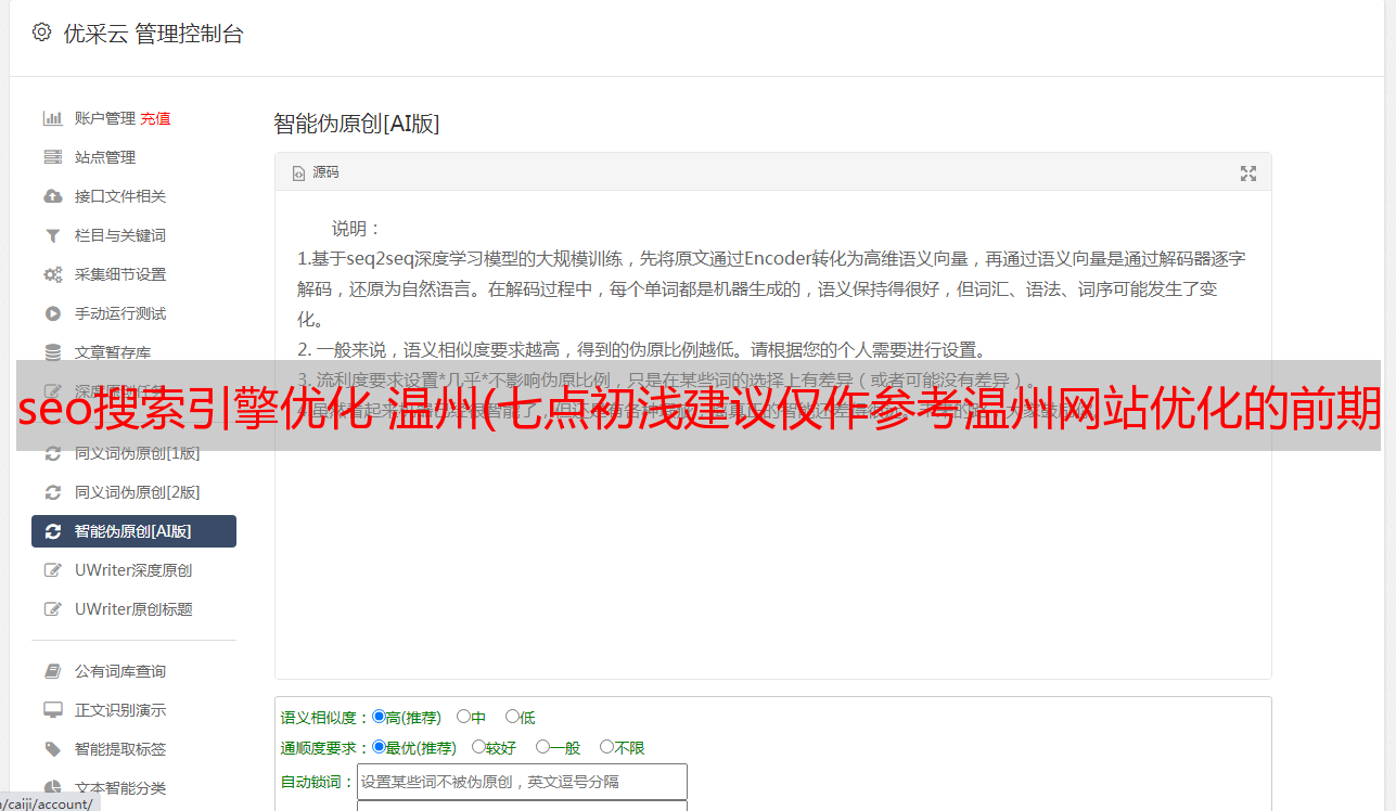 2、采集的内容不一定非要原创温州网站优化seo。只有满足用户需求的原创和非原创内容是最好的。