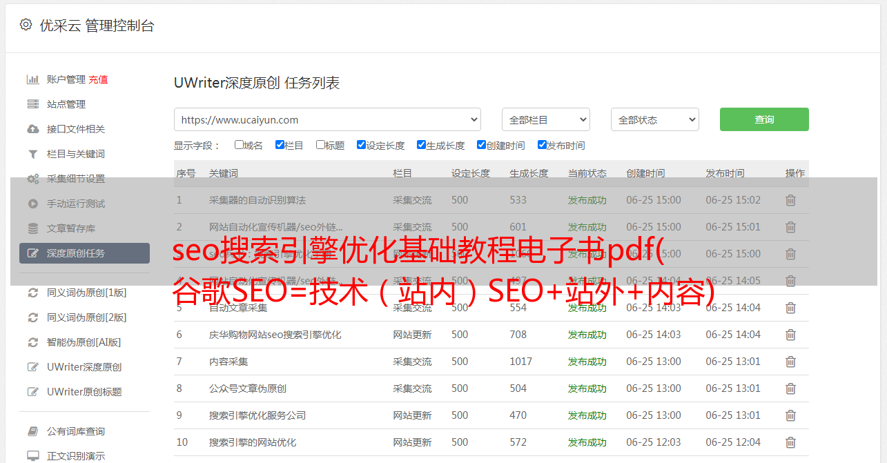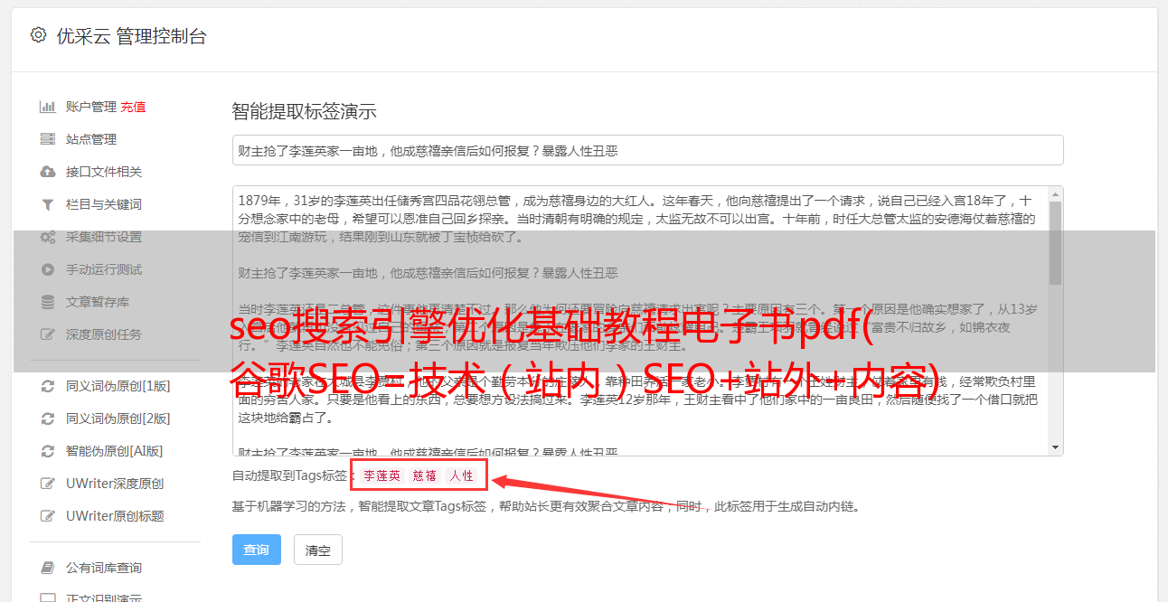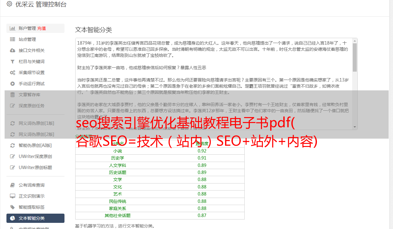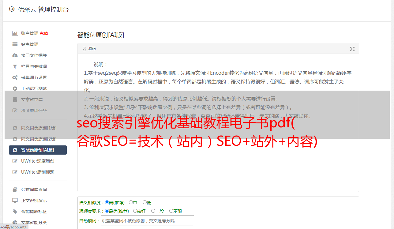 优采云 发布时间: 2022-03-25 08:12seo搜索引擎优化基础教程电子书pdf(