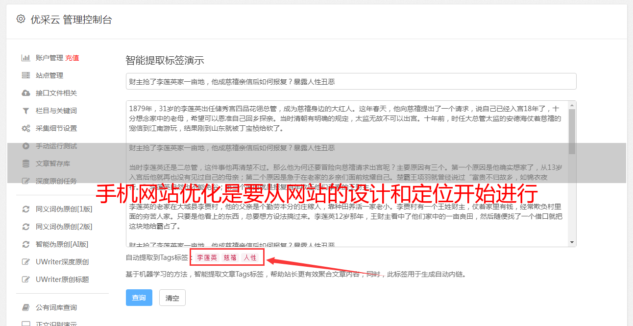 手机网站的优化始于网站的设计和定位。最重要的是要简单易用,避免过于复杂和花哨,以使用户无法触摸门口并找到想要使用的东西。对于搜索引擎而言,更好的用户体验也是更好的排名标准。