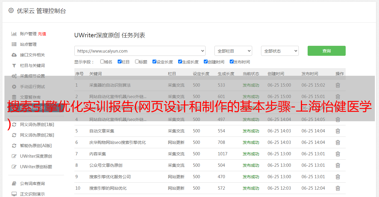 优采云 发布时间: 2022-03-26 00:22搜索引擎优化实训报告(网页设计和制作的基本步骤-上海怡健医学