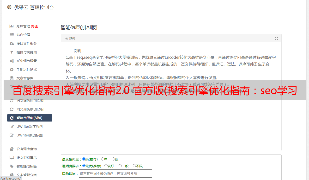 优采云 发布时间: 2022-03-26 01:03百度搜索引擎优化指南2.0 官方版(搜索引擎优化指南:seo学习教程以及免费的seo优化基础技巧)