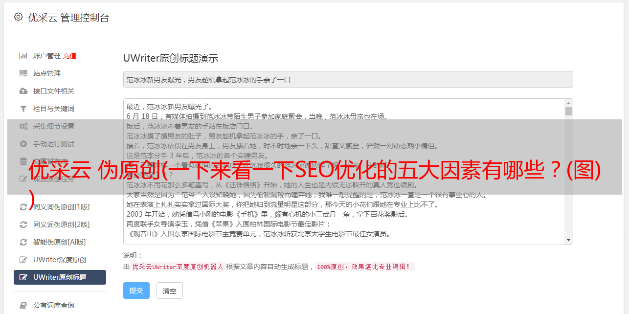优采云 伪原创(一下来看一下SEO优化的五大因素有哪些?(图) )