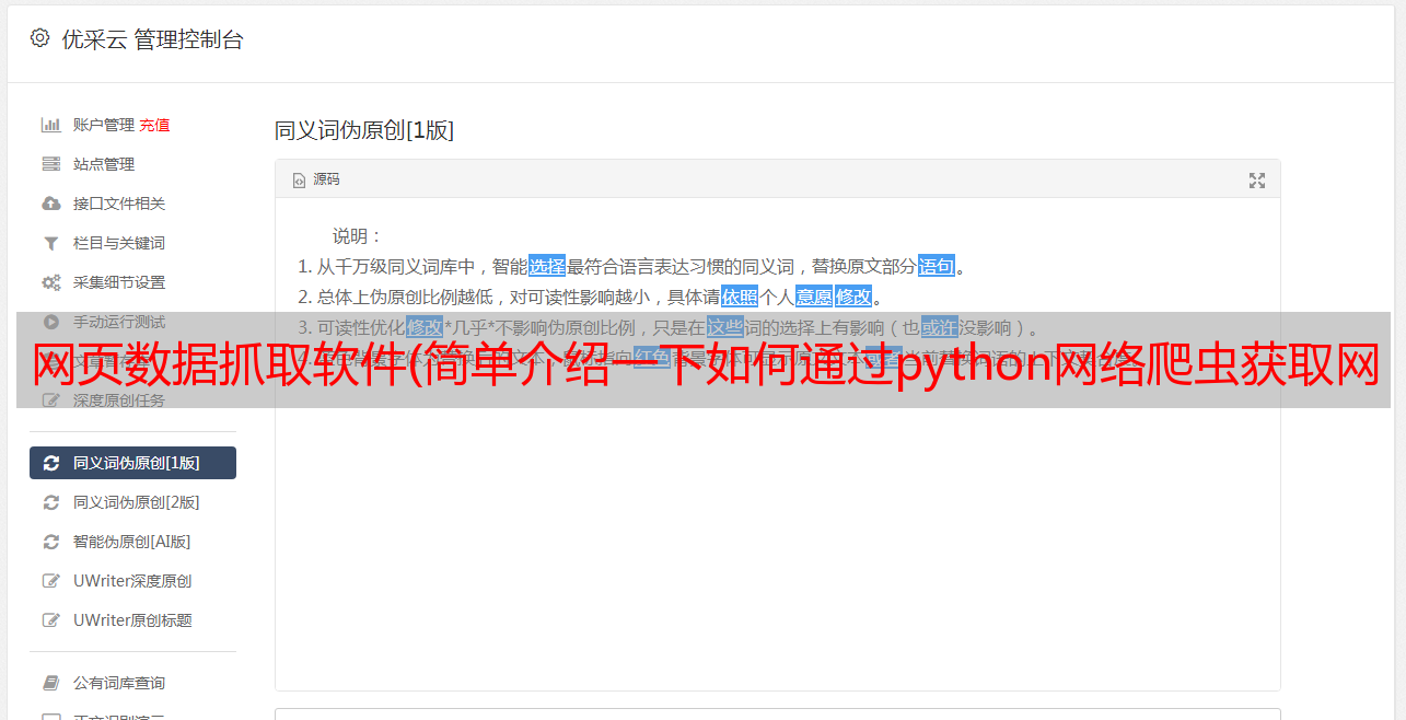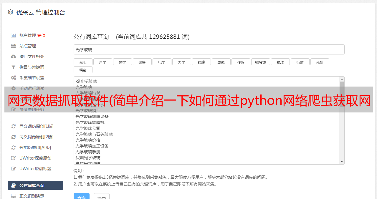 优采云 发布时间: 2022-03-26 08:15网页数据抓取软件(简单介绍一下如何通过python网络爬虫获取网站数据(图))