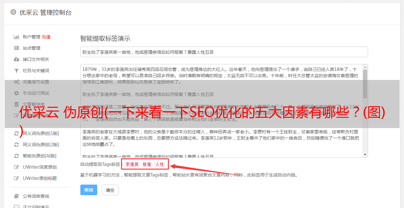 优采云 伪原创(一下来看一下SEO优化的五大因素有哪些?(图) )