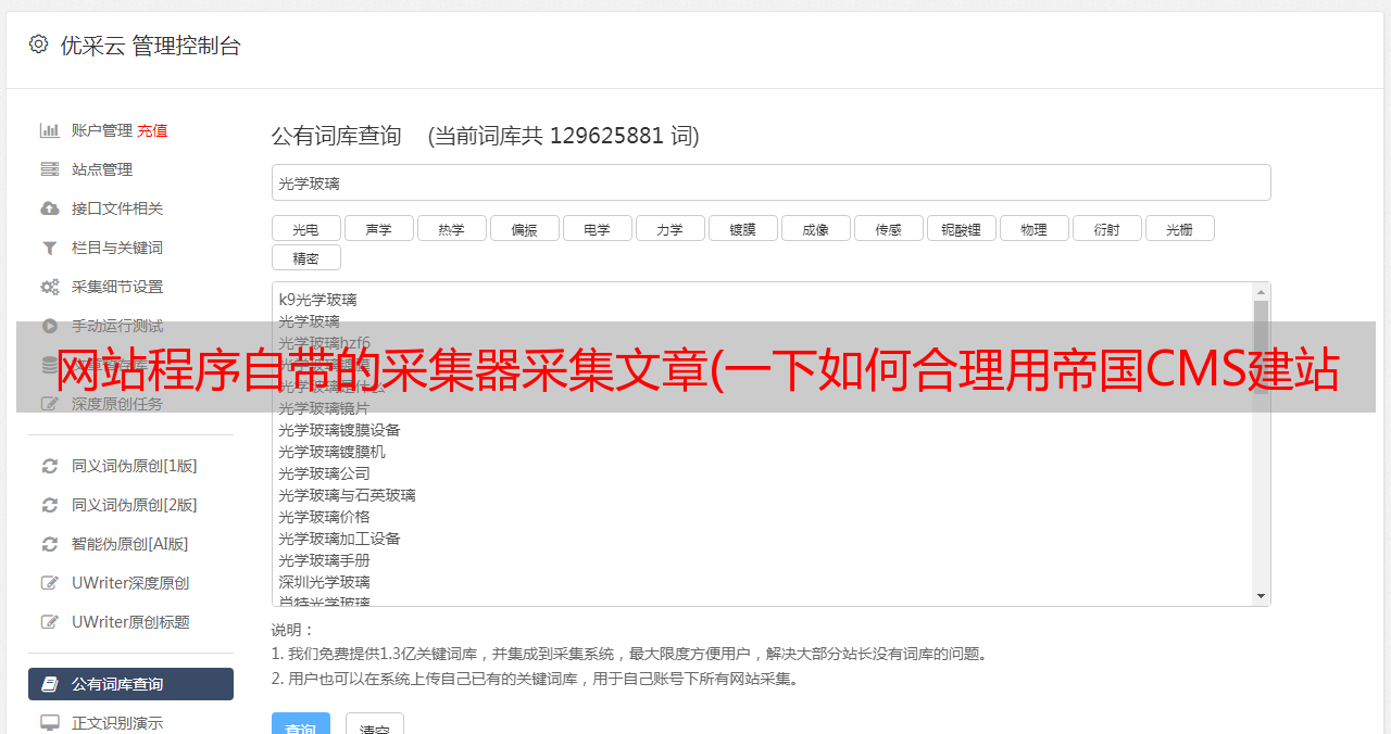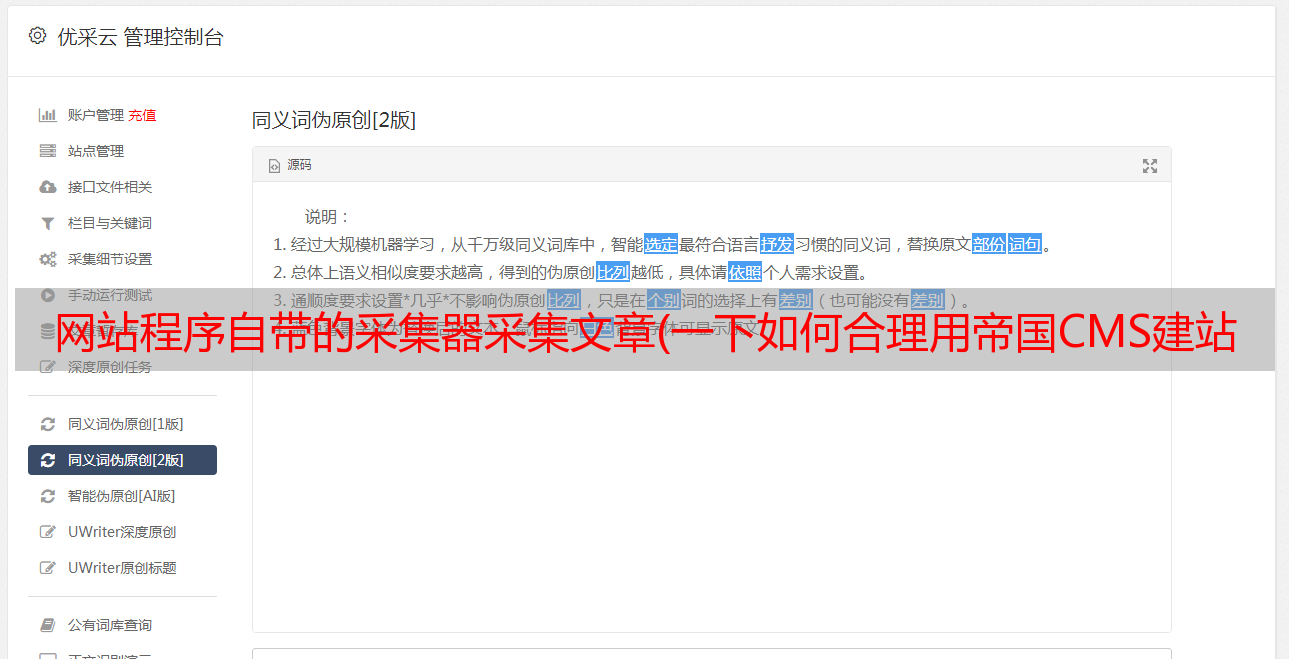 优采云 发布时间: 2022-03-26 14:07网站程序自带的采集器采集文章(一下如何合理用帝国CMS建站软件关键词布局(图文并茂))