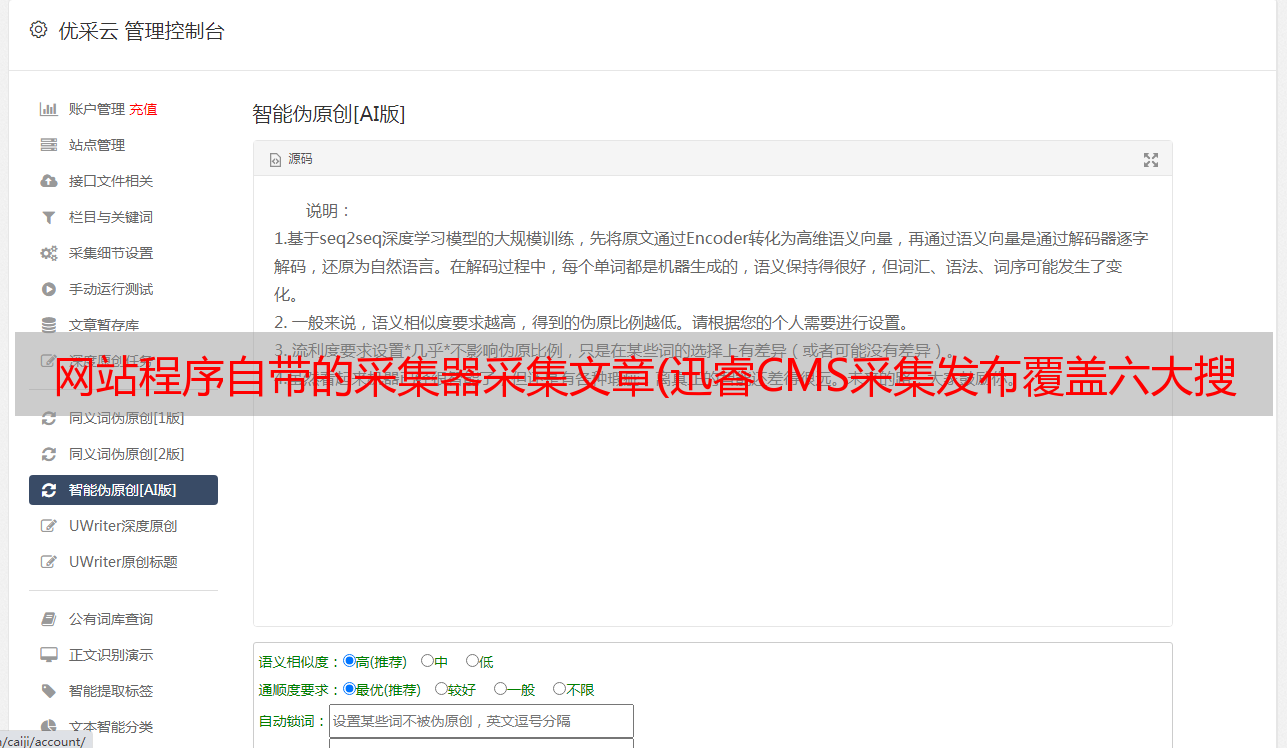 优采云 发布时间: 2022-03-26 14:08网站程序自带的采集器采集文章(迅睿CMS采集发布覆盖六大搜索引擎,百度关键词怎样优化?)