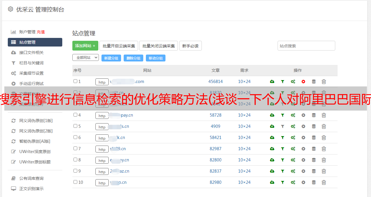 优采云 发布时间: 2022-03-26 16:04搜索引擎进行信息检索的优化策略方法(浅谈一下个人对阿里巴巴国际站seo的看法(图))