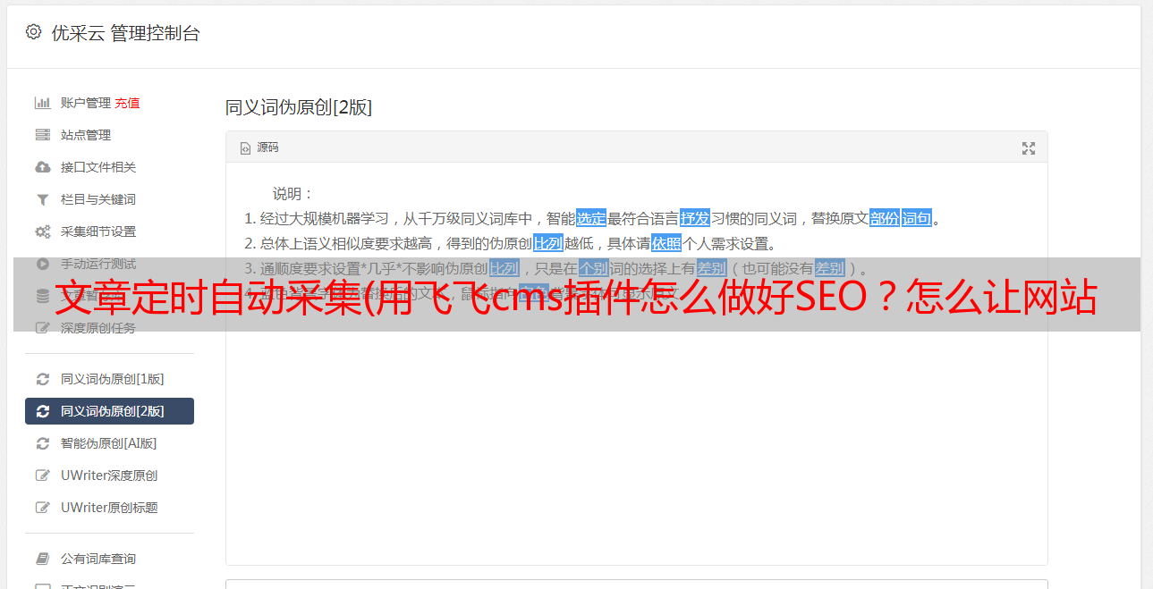 文章定时自动采集(用飞飞cms插件怎么做好SEO?怎么让网站快速收录以及关键词排名?)