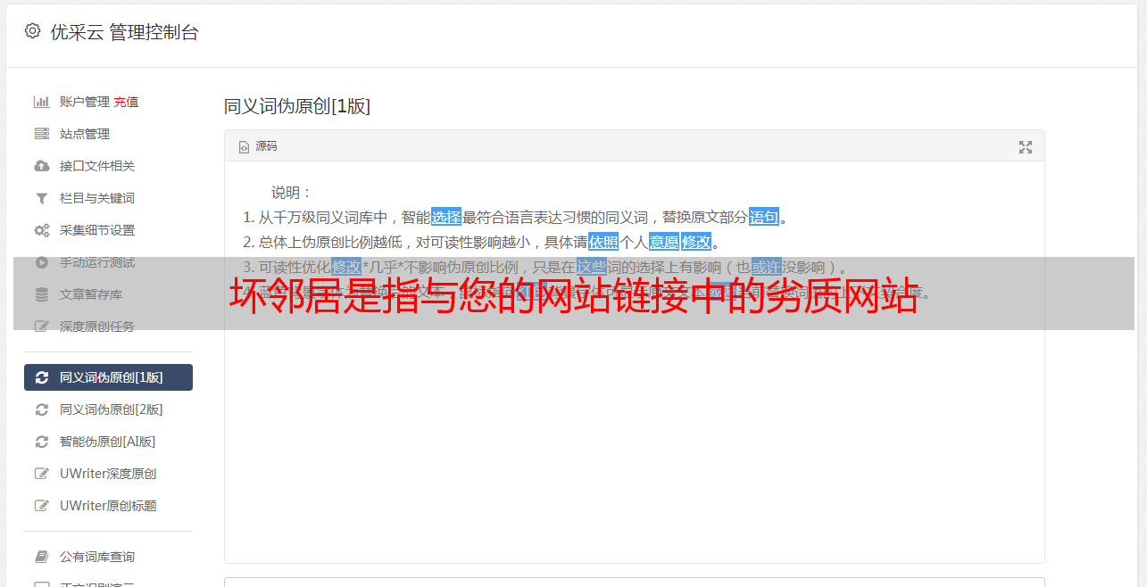 优采云 发布时间: 2021-05-12 07:12坏邻居是指与您的网站链接中的劣质网站