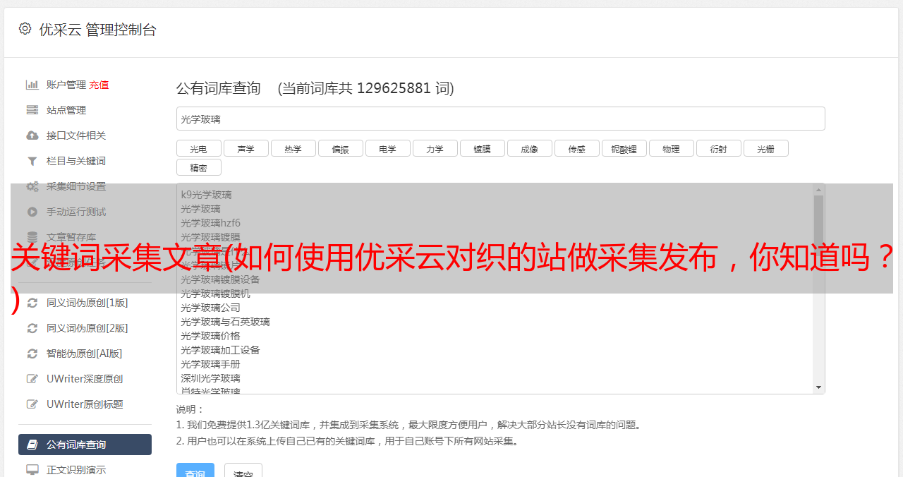 优采云 发布时间: 2022-03-27 00:02关键词采集文章(如何使用优采云对织的站做采集发布,你知道吗?