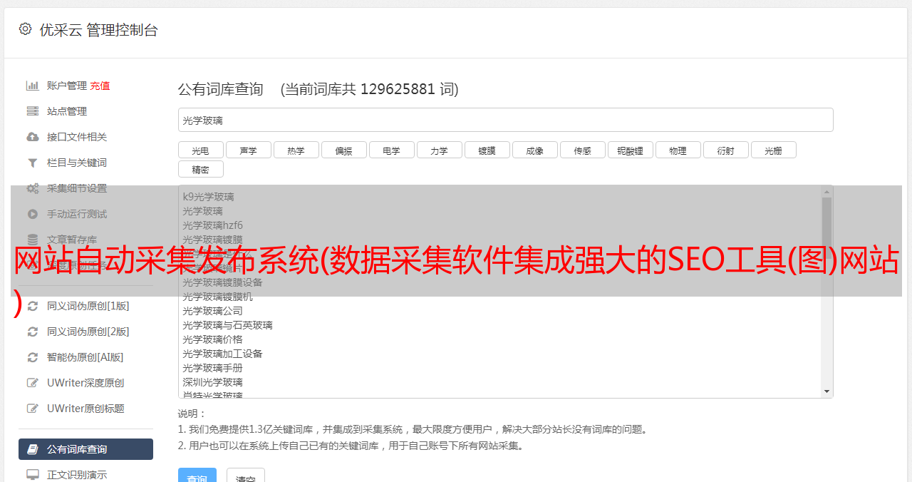 优采云 发布时间: 2022-03-27 01:21网站自动采集发布系统(数据采集软件集成强大的SEO工具(图)网站