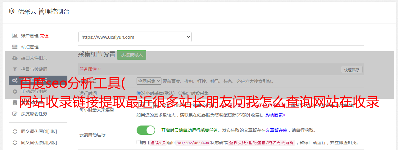 最近有很多站长朋友问我如何知道网站在收录中有哪些链接,网站有哪些关键词,收录@有多少个链接> 我的同龄人,网站排名是多少?还有,如何批量提取网站死链接,哪些收录链接没有更新。有没有免费的工具可以查询统计收录链接,支持多平台如:百度、搜狗、今日头条等搜索引擎。