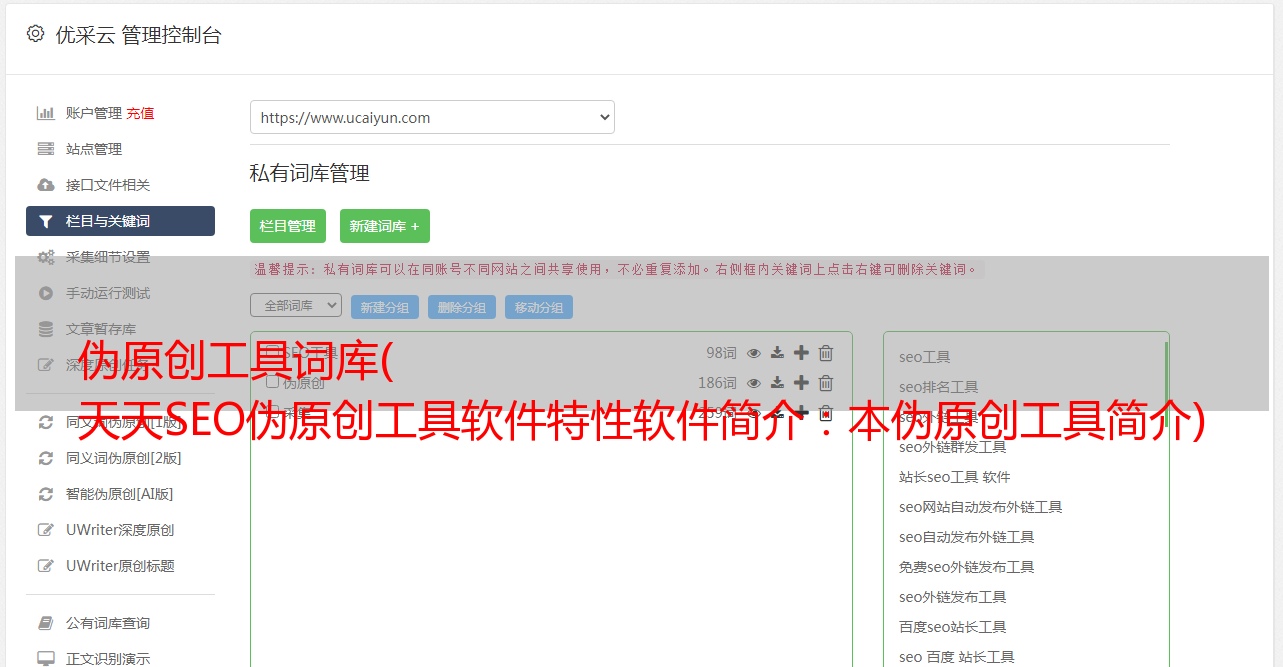 伪原创工具词库( 天天SEO伪原创工具软件特性软件简介:本伪原创工具简介)