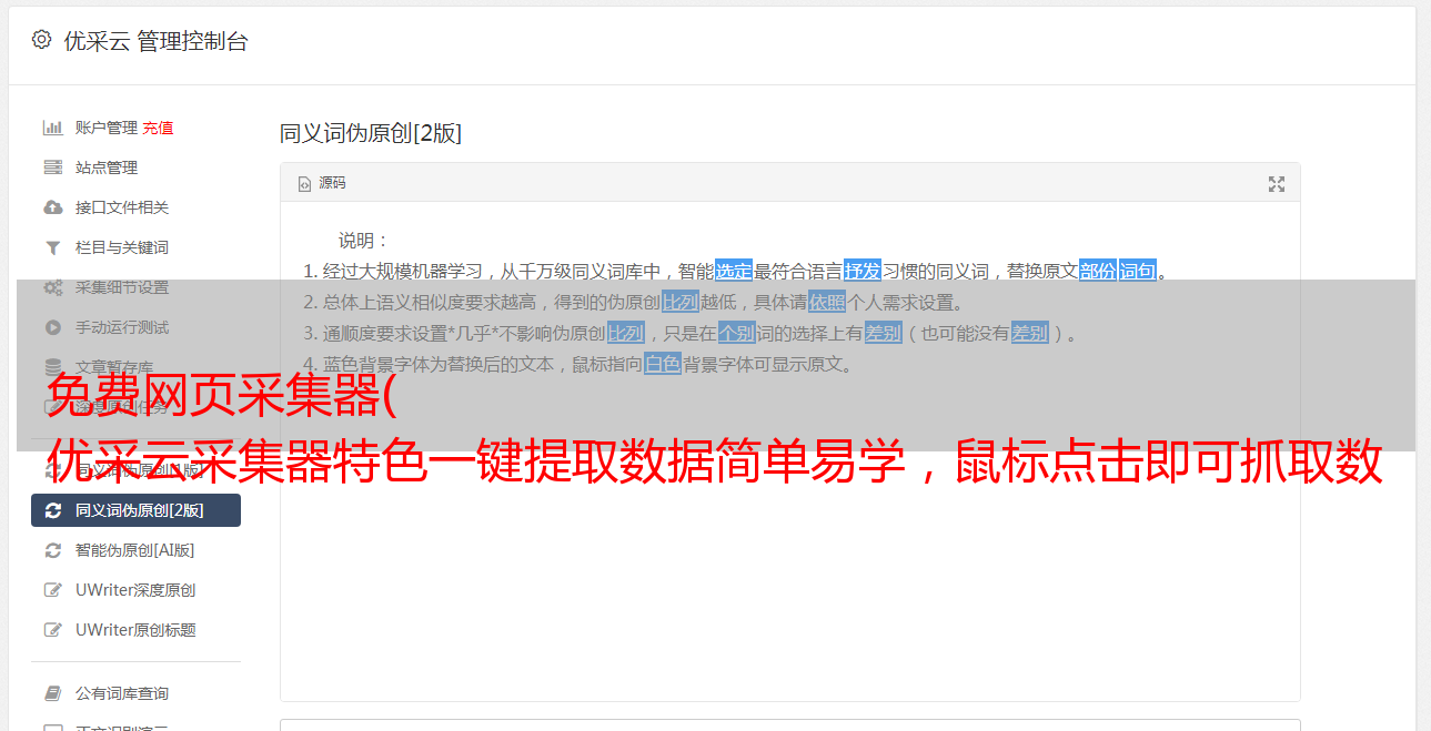 优采云采集器特点