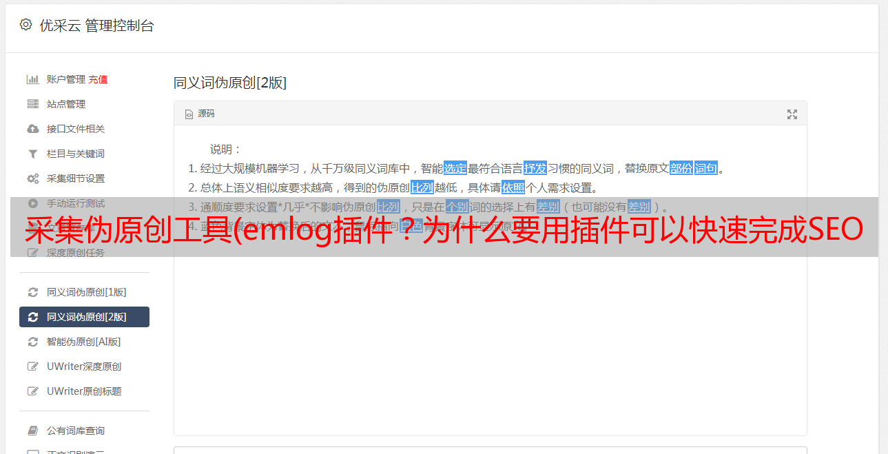 优采云 发布时间: 2022-03-27 07:02采集伪原创工具(emlog插件?为什么要用插件可以快速完成SEO优化?)