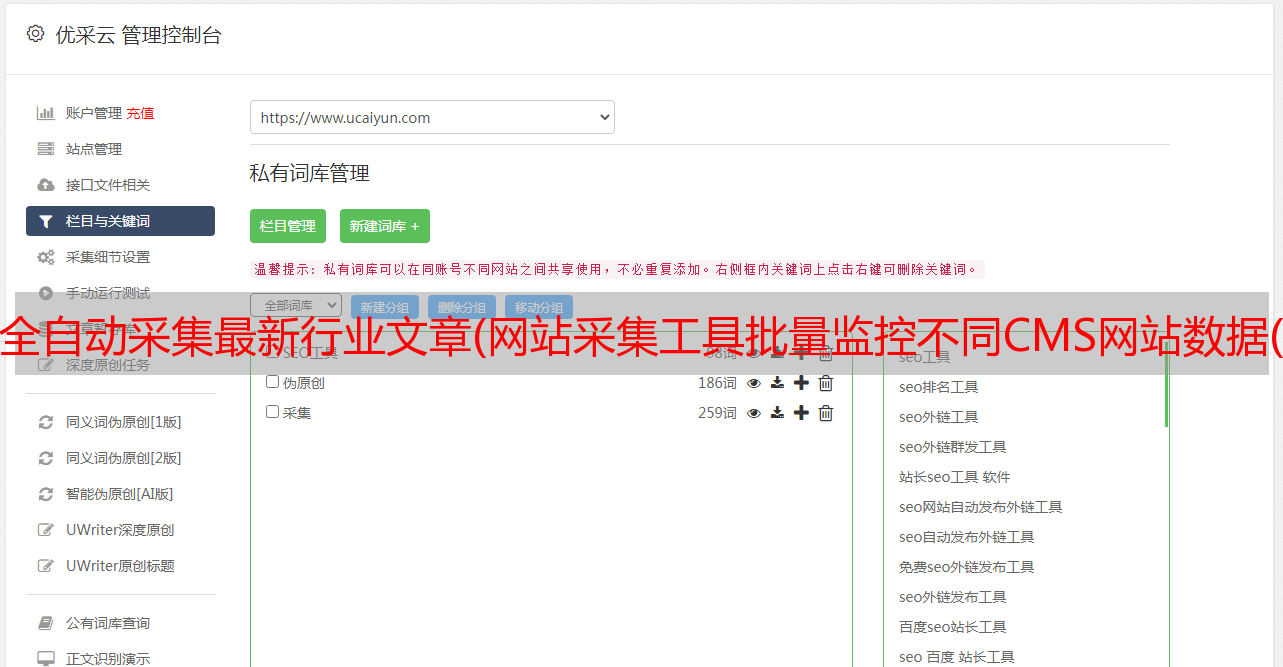 优采云 发布时间: 2022-03-27 08:00全自动采集最新行业文章(网站采集工具批量监控不同CMS网站数据(组图)