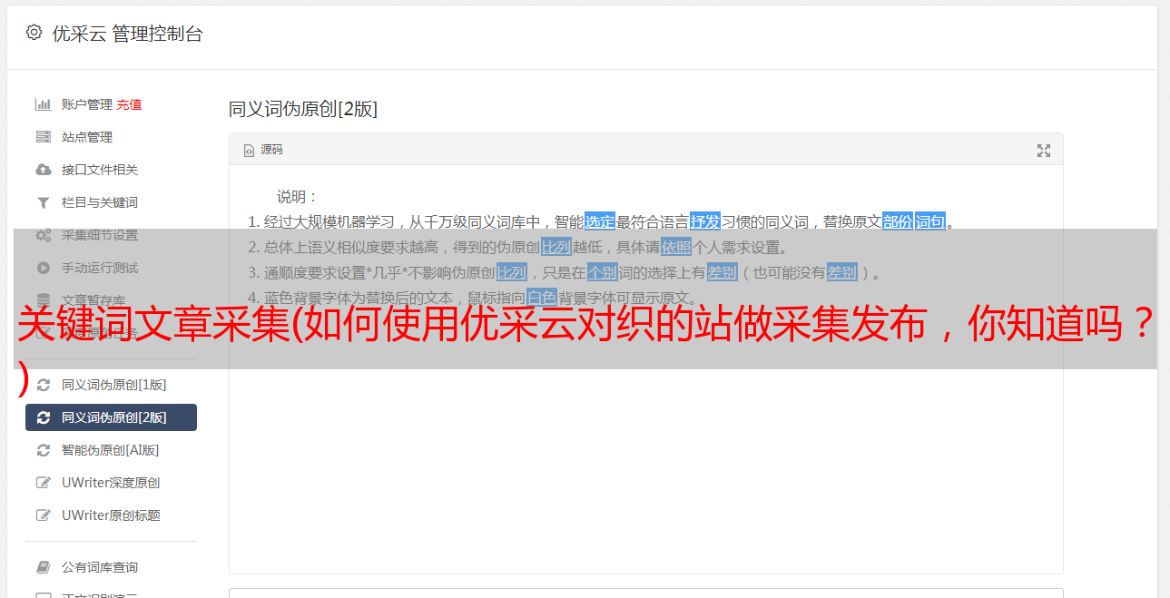关键词文章采集(如何使用优采云对织的站做采集发布,你知道吗? )