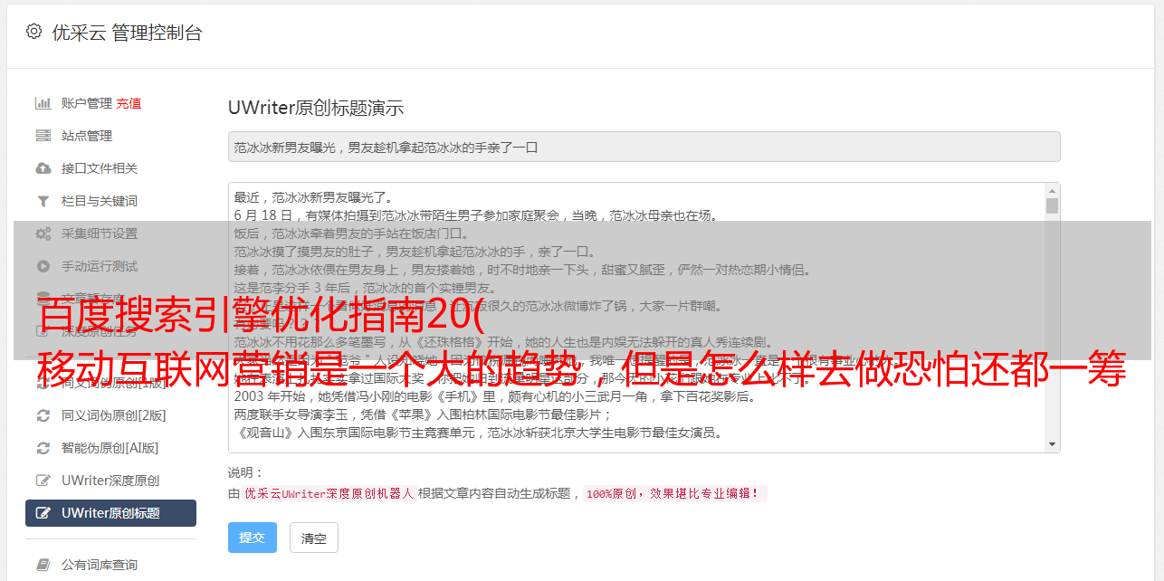 优采云 发布时间: 2022-03-27 08:27百度搜索引擎优化指南20(