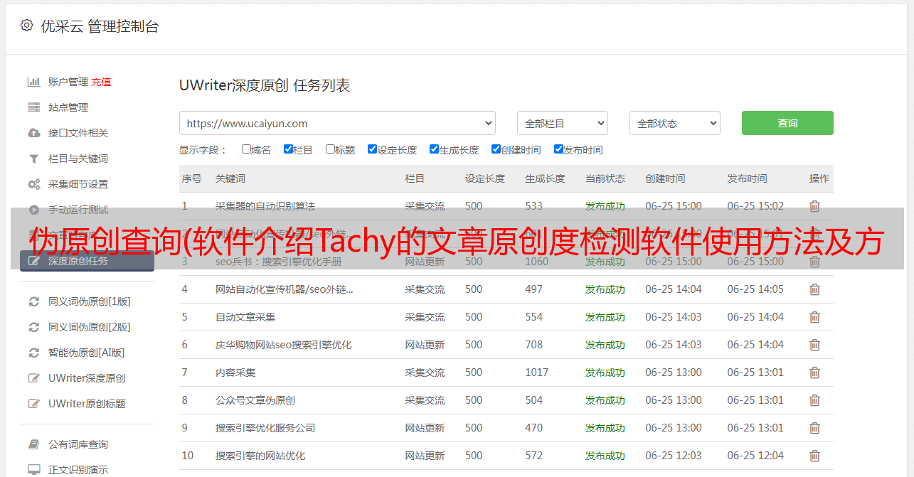 优采云 发布时间: 2022-03-27 11:15伪原创查询(软件介绍Tachy的文章原创度检测软件使用方法及方法)