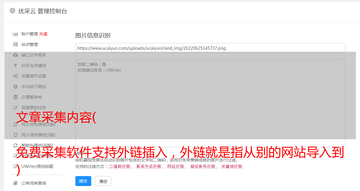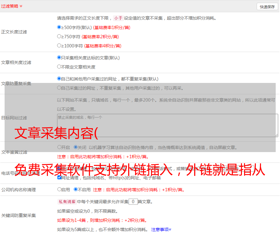 免费采集软件支持外链插入,外链就是指从别的网站导入到