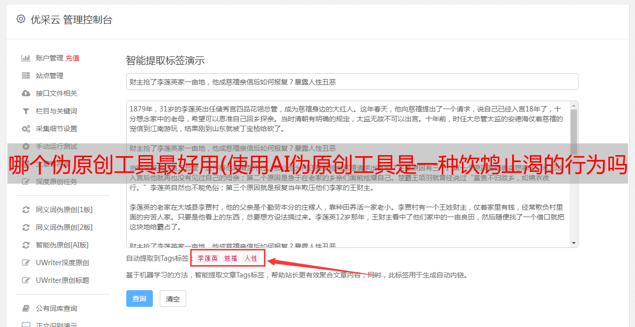 优采云 发布时间: 2022-03-27 15:00哪个伪原创工具最好用(使用AI伪原创工具是一种饮鸩止渴的行为吗,这是饮鸩止渴