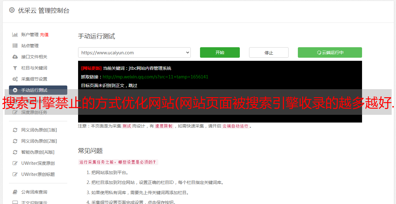 优采云 发布时间: 2022-03-27 15:04搜索引擎禁止的方式优化网站(网站页面被搜索引擎收录的越多越好.txt文本文件)