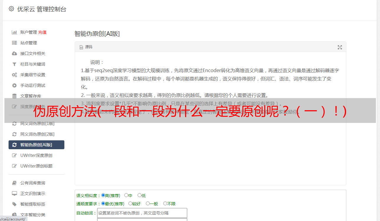 对于大量的网站来说,在开发初期,可能人手不够手动写很多文章,没多少钱买版权相关的内容,在短期来看,网站的氛围也很难激发SERS贡献大量内容,此时我们需要合适的伪原创。
