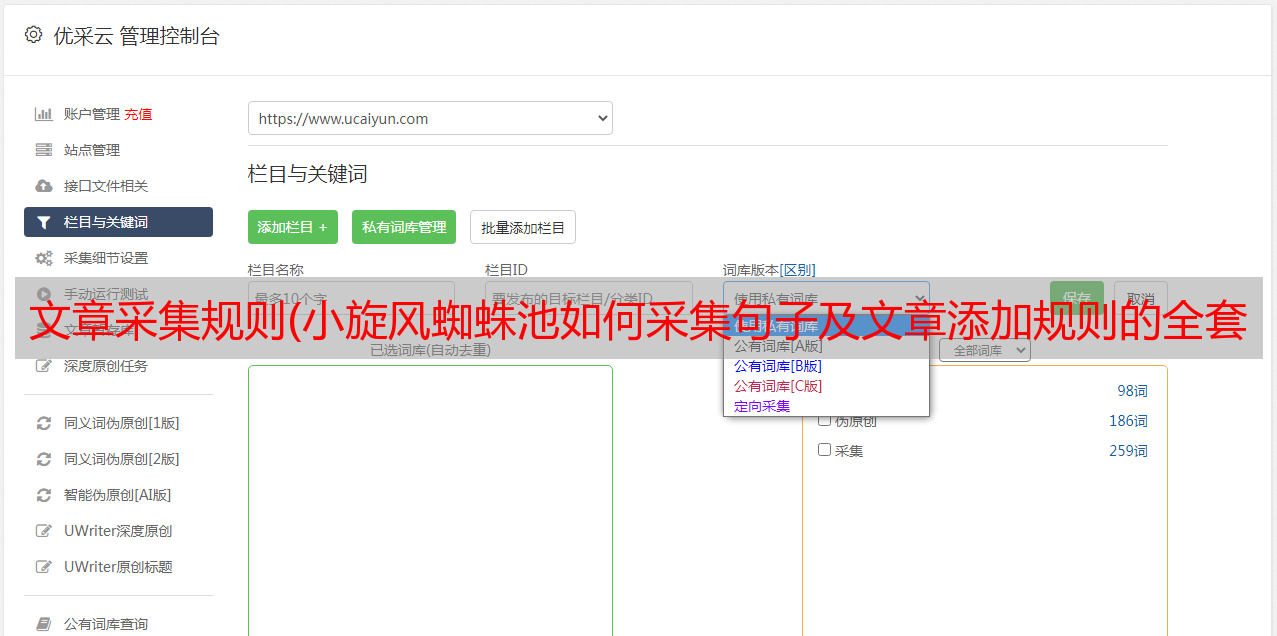 优采云 发布时间: 2022-03-28 00:01文章采集规则(小旋风蜘蛛池如何采集句子及文章添加规则的全套教程)