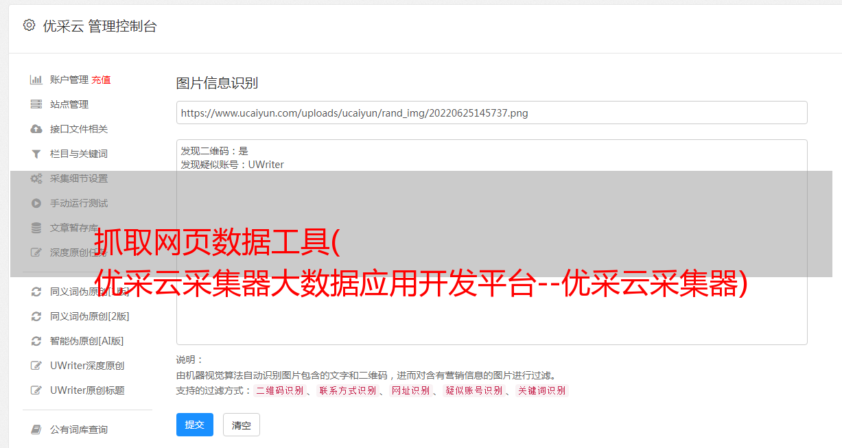 优采云采集器 是一款网络数据采集、处理、分析和挖掘软件。它可以灵活、快速的抓取网页上零散的信息,通过强大的处理功能,准确的挖掘出需要的数据。免费功能可实现数据采集、清洗、分析、挖掘和最终可用数据呈现。接口和插件扩展等高级功能是收费的。通过设置内容采集规则,可以方便快捷的抓取网络上散落的文字、图片、压缩文件、视频等内容。