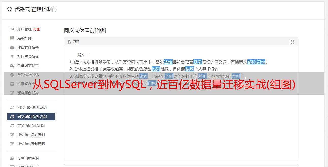 优采云 发布时间: 2021-05-12 23:08从SQLServer到MySQL,近百亿数据量迁移实战(组图)