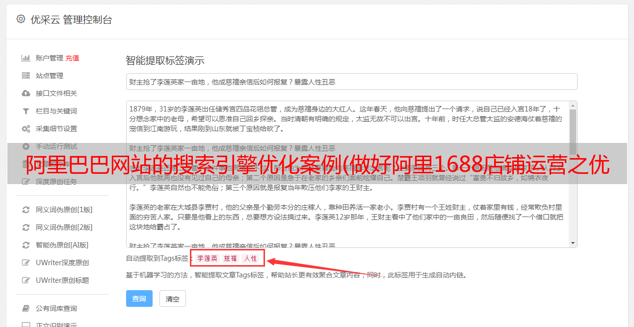 优采云 发布时间: 2022-03-28 19:20阿里巴巴网站的搜索引擎优化案例(做好阿里1688店铺运营之优化标题优化产品的重要性)