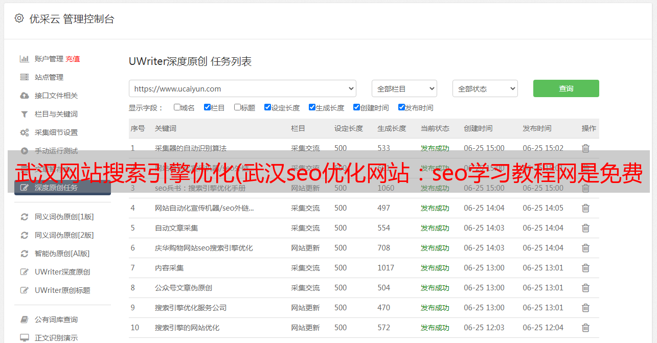 优采云 发布时间: 2022-03-28 19:28武汉网站搜索引擎优化(武汉seo优化网站:seo学习教程网是免费SEO自学教程)