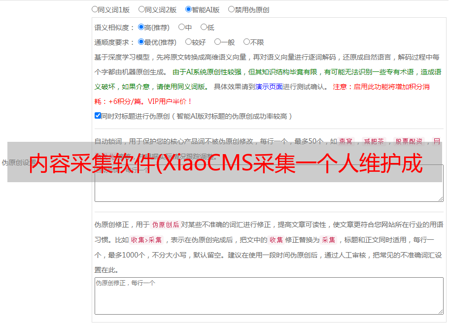 肖cms采集网页内容质量专门针对SEO优化。网站是一一积累的,所以很多时候网站在搜索引擎中的最终质量得分也和这些页面息息相关。在这方面,我们的网站内容必须保证原创度,并且必须有独特的差异。绝对禁止站内各页面内容有高度相似性,站内内容不得与站外内容非常相似,否则会有低质量评分的风险,这对 网站 的权重得分非常不利。