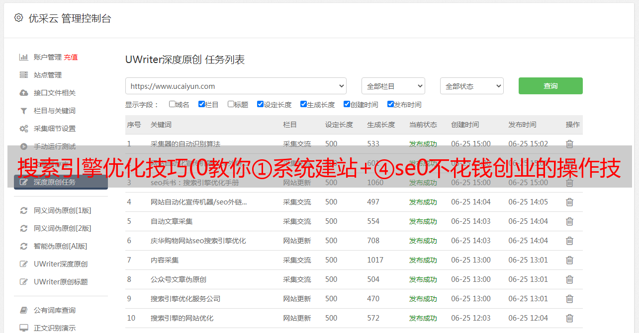 优采云 发布时间: 2022-03-29 04:09搜索引擎优化技巧(0教你①系统建站+④se0不花钱创业的操作技巧)