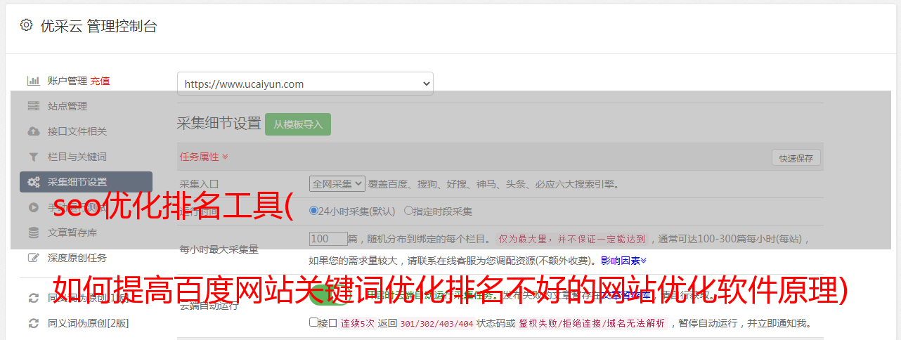 坏网站优化软件的原理大家都知道。百度就有这样的算法。当你网站的人多于第9次点击时,表示第10次网站会好于第9次网站,否则用户会点击第10次。位,不要点击第9个?同时,百度在站长平台也有数据显示模拟人工点击获得排名的排名和点击率。你一定很怀疑。既然是刷软件,肯定有循环机制,可能导致IP、PV、UV,访问时间跟百度成正比,百度认不出来?如果这些数据真的成比例,当然可以识别,但问题是他模拟的是手动点击。