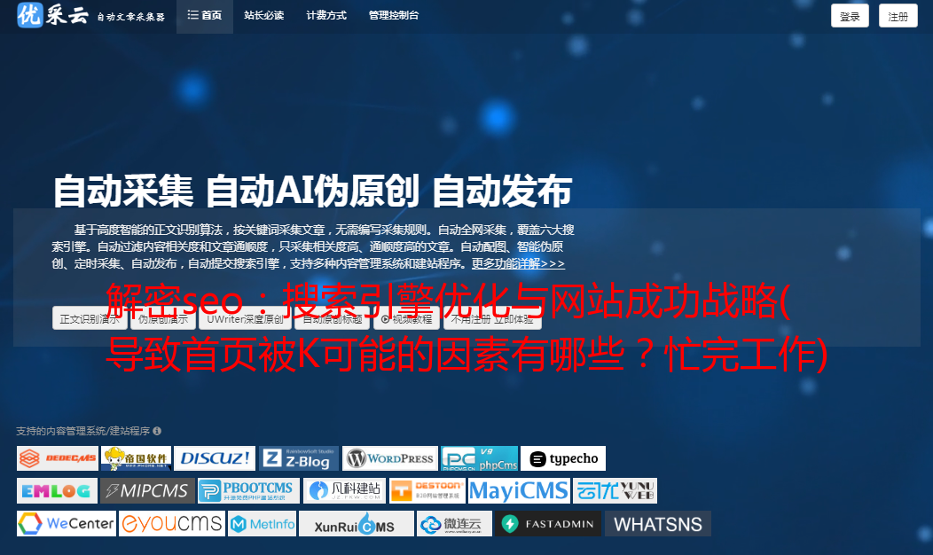 解密seo:搜索引擎优化与网站成功战略( 导致首页被K可能的因素有哪些?忙完工作)